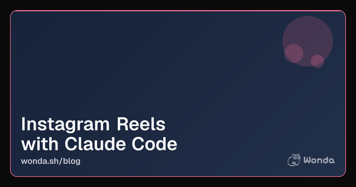 Si ya leíste You Don't Need to Learn the CLI: Let Claude Code Run Wonda for You, esta es la versión específica para Instagram de esa idea. El flujo aquí es más acotado y más práctico: crear en lote una semana de Instagram Reels, revisarlos y programarlos de forma segura.